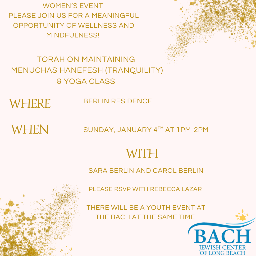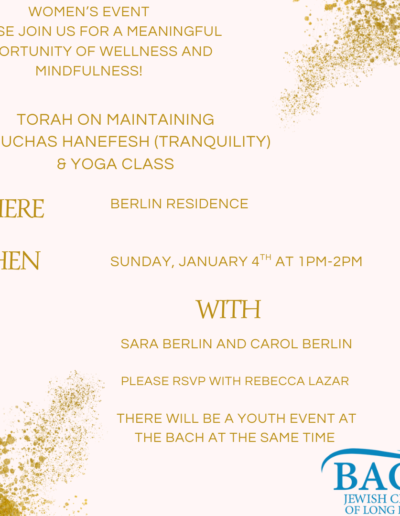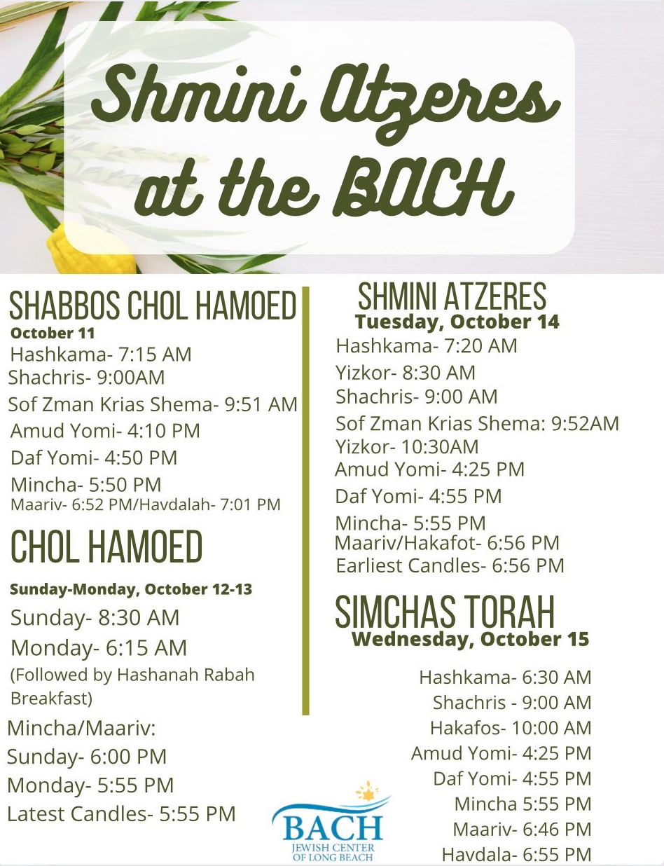 By submitting this form, you are consenting to receive marketing emails from: The BACH Jewish Center – 210 Edwards Blvd, Long Beach, NY 11561 https://www.bachlongbeach.com/ . You can revoke your consent to receive emails at any time by using the SafeUnsubscribe®️ link, found at the bottom of every email. Emails are serviced by Mailchimp